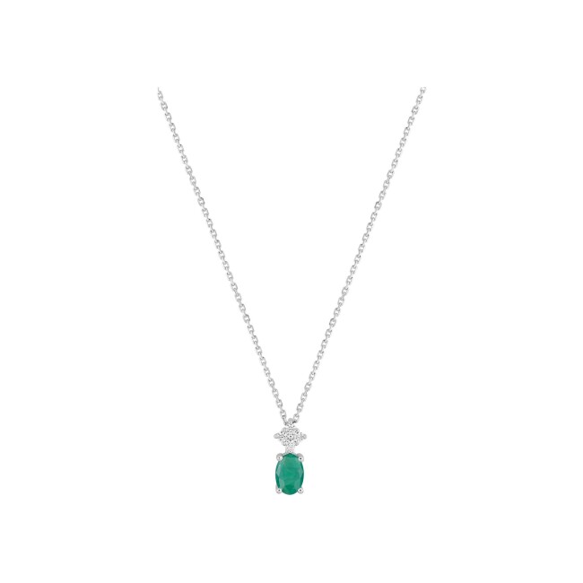Collier en or blanc, émeraude et oxyde de zirconium